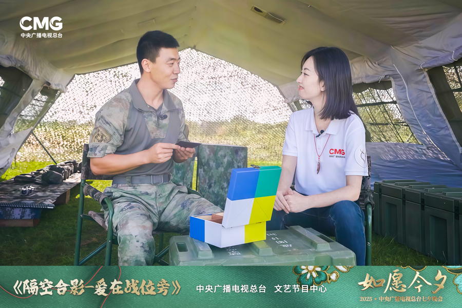 晚会中,“乞巧团”带领观众探寻“巧”的当代内涵,与天台的非遗传承理念呼应。天台山云雾茶制作技艺、天台糕花、天台漆艺、剪窗花技艺、银刻技艺、绒花缠花技艺等,是“匠心永传”的生动例证。晚会通过“龙梭寻巧”的线索,将各“巧艺”串联,彰显了地方对传统文化的守护与创新。站在抗日战争胜利80周年的节点,晚会也融入家国和平的愿景。融媒体短片《隔空合影——爱在战位旁》展现了军旅夫妻深情。